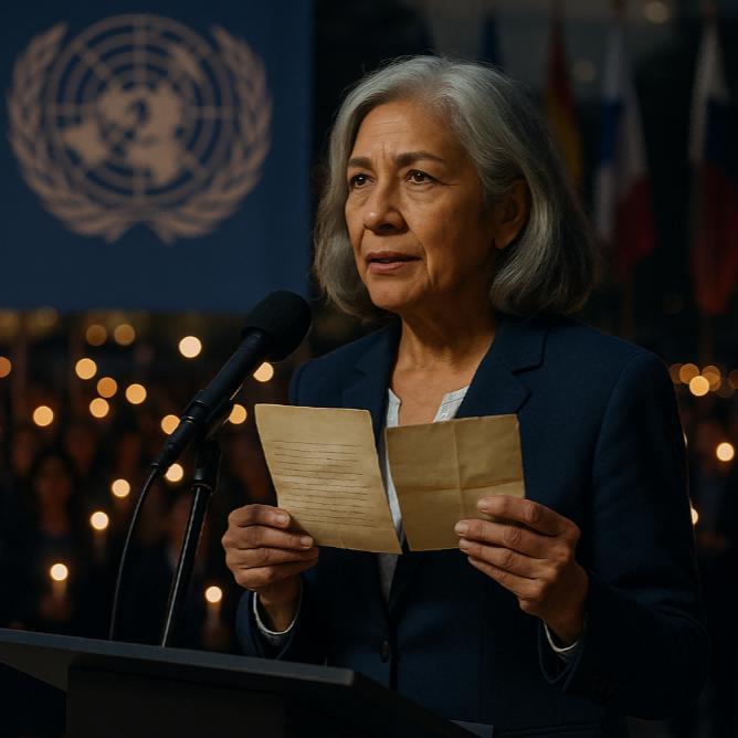 Il microfono era piccolo e discreto. Il vento frusciava tra le bandiere mentre Maya spiegava la prima lettera. Le sue mani tremavano leggermente, non per la paura, ma per il peso della storia.